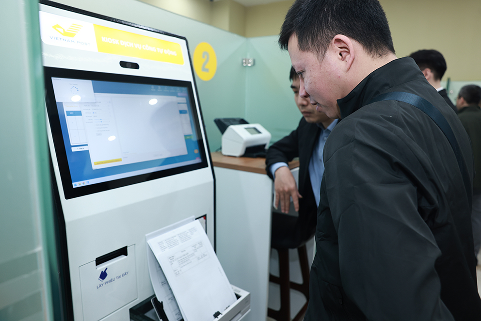 Ông Ngô Hải Phan - Cục trưởng Cục Chuyển đổi số - Cơ yếu - Văn phòng Trung ương Đảng tham quan trải nghiệm kiosk tự phục vụ