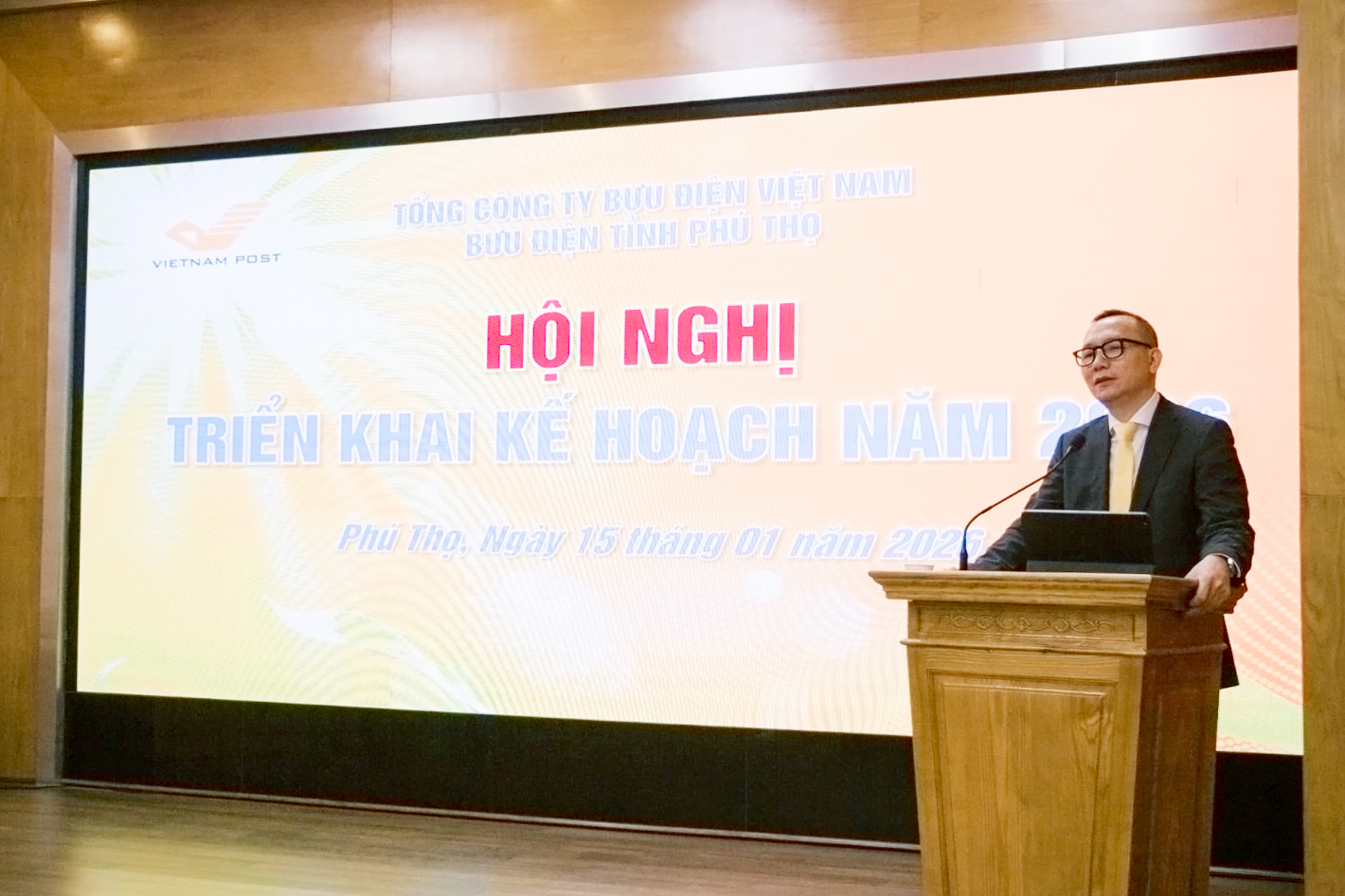Chiều ngày 15/01/2026, Bưu điện tỉnh Phú Thọ đã tổ chức Hội nghị triển khai kế hoạch sản xuất kinh doanh năm 2026. Dự và chỉ đạo Hội nghị có đồng chí Lê Quốc Anh, Thành viên Hội đồng Thành viên Tổng Công ty Bưu điện Việt Nam. Đây là sự kiện quan trọng nhằm quán triệt mục tiêu, nhiệm vụ, giải pháp trọng tâm, tạo khí thế quyết tâm thực hiện thắng lợi kế hoạch sản xuất kinh doanh năm 2026 trong toàn đơn vị.