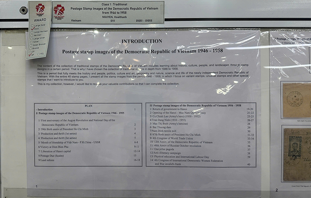3. Bộ sưu tập “Xã hội Việt Nam đầu thế kỷ 20” (Vietnam Society in the Early 20th Century) (thể loại Sưu tập Picture Postcard 5 khung) của nhà sưu tập Ngô Viết Vĩnh, Hội Tem Thành phố Hồ Chí Minh đạt giải: Mạ Vàng lớn (Large Vermeil) và Giải đặc biệt (Special Prize).