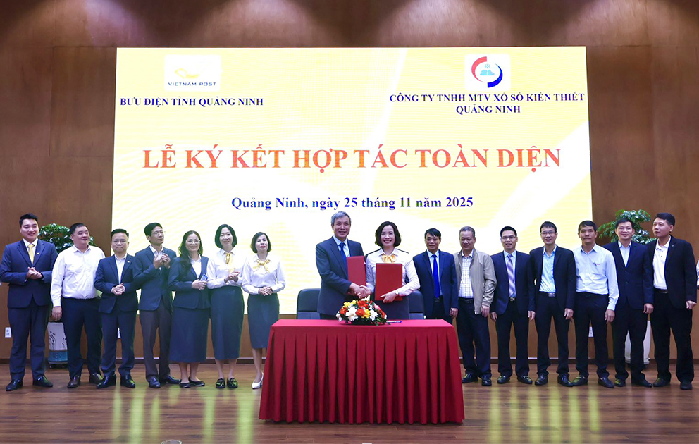 Sáng ngày 25/11/2025, tại trụ sở Bưu điện tỉnh, Bưu điện tỉnh Quảng Ninh và Công ty TNHH MTV Xổ số Kiến thiết Quảng Ninh phối hợp tổ chức Lễ ký kết Hợp tác toàn diện, đánh dấu bước phát triển mới trong việc mở rộng kênh phân phối và nâng cao chất lượng phục vụ người dân trên địa bàn.