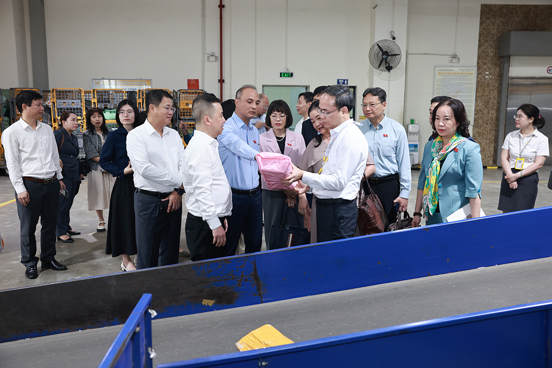 Tại buổi làm việc với Tổng công ty Bưu điện Việt Nam, nhiều nội dung quan trọng đã được Đoàn Khảo sát cùng các đại biểu trao đổi, tập trung vào thực tiễn triển khai hoạt động bưu chính thời gian qua. Trong đó có các vấn đề như: tổ chức cung ứng dịch vụ bưu chính công ích; quy trình kiểm soát hàng cấm, hàng lậu; cơ chế phối hợp với các cơ quan chức năng trong vận chuyển hàng hóa; vai trò của doanh nghiệp bưu chính quốc gia; triển khai mã địa chỉ bưu chính, nền tảng số; định hướng phát triển bưu chính xanh trong thời gian tới…
