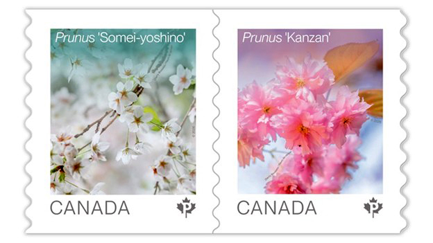Ngày 2/3/2026, Bưu chính Canada (Canada Post) đã phát hành bộ tem Hoa mùa xuân gồm hai mẫu tem giới thiệu hai giống hoa anh đào nổi tiếng là Kanzan và Somei-yoshino.