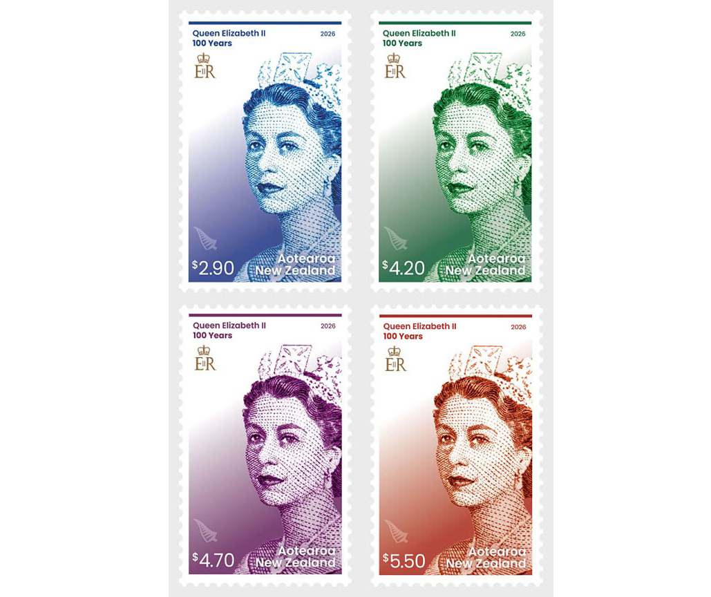 Ngày 4/2/2026, Bưu chính New Zealand đã ra mắt một bộ tem gồm 4 con tem vĩnh cửu để kỷ niệm 100 năm ngày sinh Nữ hoàng Anh Elizabeth II.