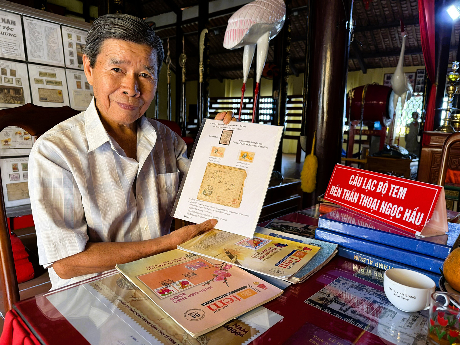 Ông Trần Hữu Huệ (sinh năm 1951), ngụ xã Thoại Sơn dành hơn nửa thế kỷ để nhặt nhạnh từng “mảnh ghép” của lịch sử và văn hóa thông qua những con tem nhỏ.