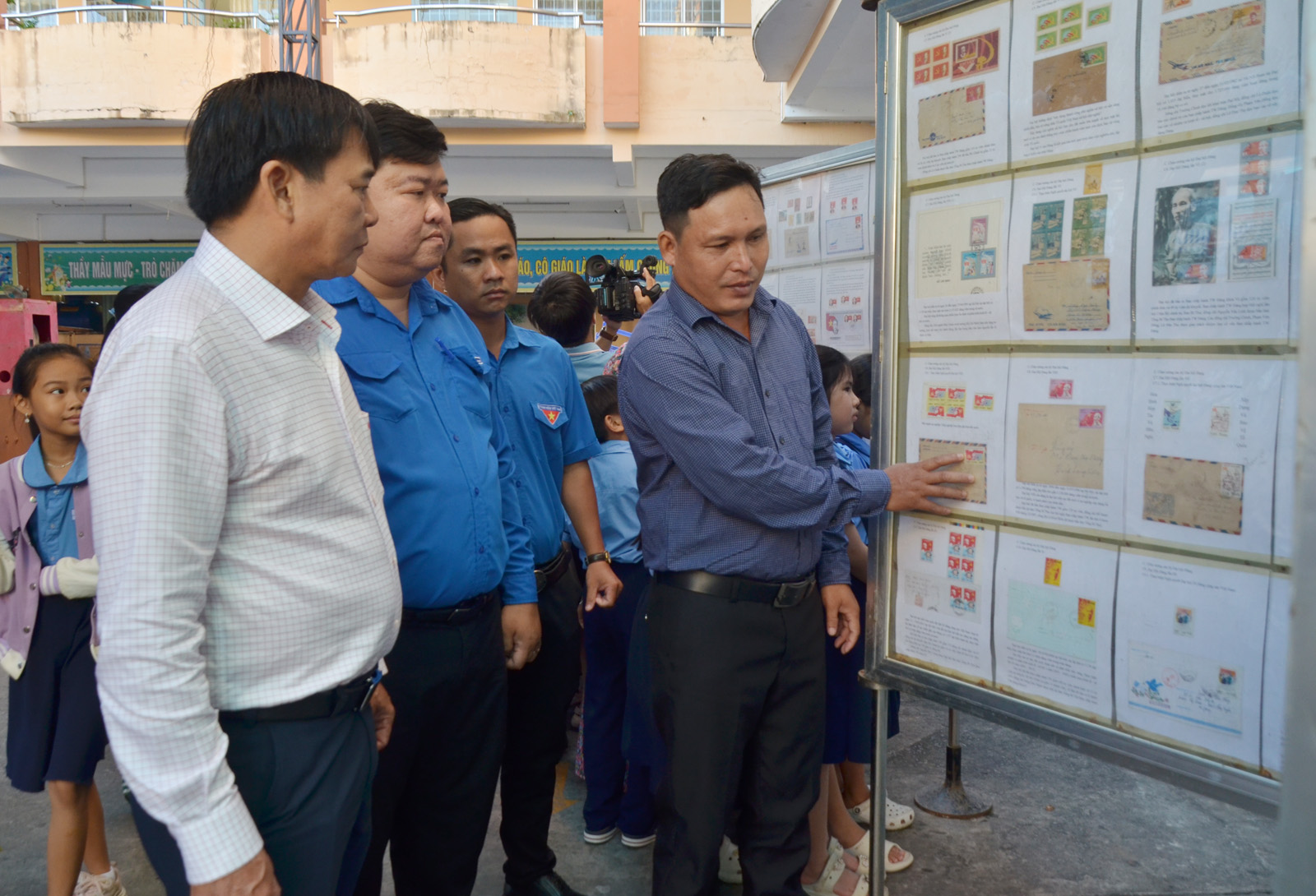 Đại biểu tham quan hình ảnh sưu tập tem tại lễ phát động